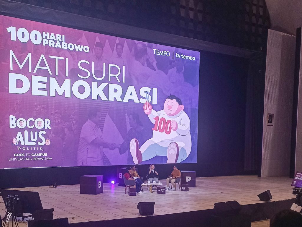 17 Februari 2025, Tempo mengadakan talkshow Bocor Alus Politik bertajuk “Mati Suri Demokrasi” di Malang. Talkshow ini merupakan rangkaian dari acara Tempo Goes to Campus Universitas Brawijaya bertema 100 hari pemerintahan Prabowo. Acara ini dipandu oleh Raymundus Rikang dan Fransisca Christy, jurnalis Tempo yang mengisi program Bocor Alus Politik.