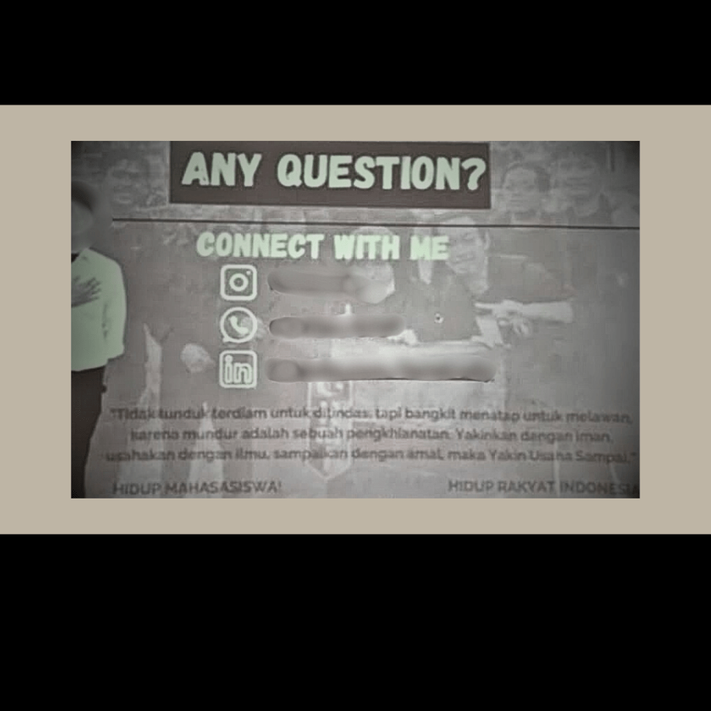 Menanggapi hal itu, Farrel membantah dugaan jargon dan menyatakan bahwa hal tersebut hanyalah kutipan pribadi dan relevan dengan materi yang disampaikan. “Yang perlu digaris bawahi, aku sama sekali tidak mengarah ke satu lembaga, baik intra maupun lainnya, tidak ada pula ajakan buat bergabung,” tambah Farrel.
